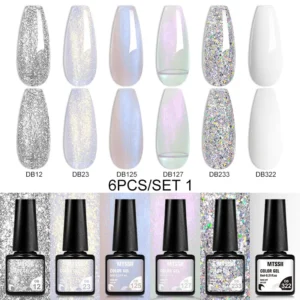 Acrylic Nails Kit Sparkly Fluorescent Gel Polish Glitter Neon Set 6Pcs